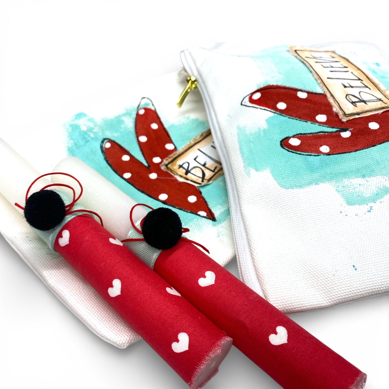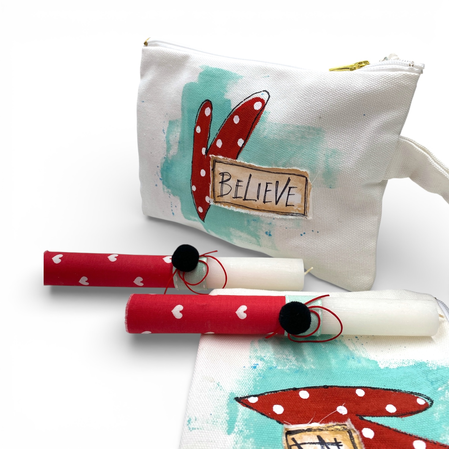 Ενδέχεται να υπάρχουν αποκλίσεις λόγω του οτι είναι ζωγραφισμένο στο χέρι ,αλλά και στο χρώμα του φερμουάρ ανάλογα με την διαθεσιμότητα